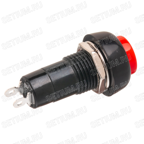 PSW-6M-R Кнопка круглая 220В без фиксации, крепление гайка, красная