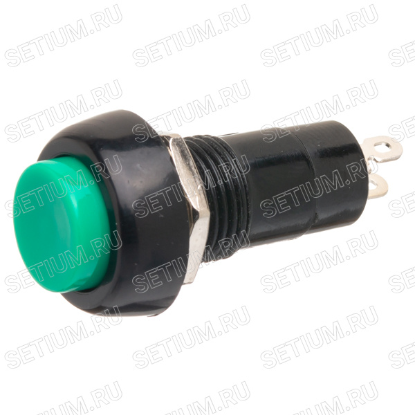 PSW-6M-G Кнопка круглая 220В без фиксации, крепление гайка, зеленая