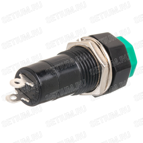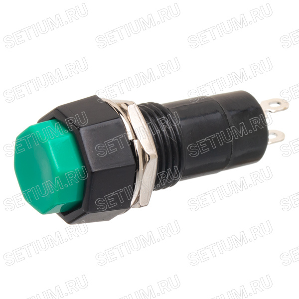 PSW-6A-G Кнопка восьмиугольная 220В без фиксации, крепление гайка, зеленая