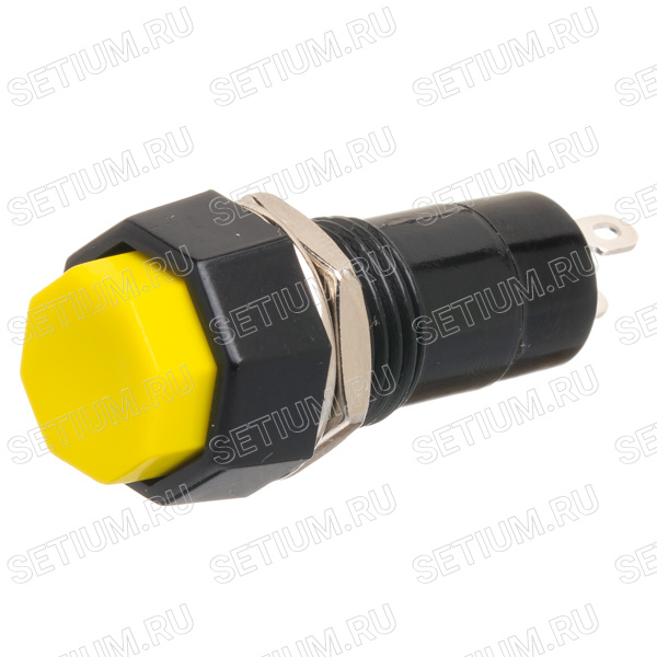 PSW-6A-Y Кнопка восьмиугольная 220В без фиксации, крепление гайка, желтая