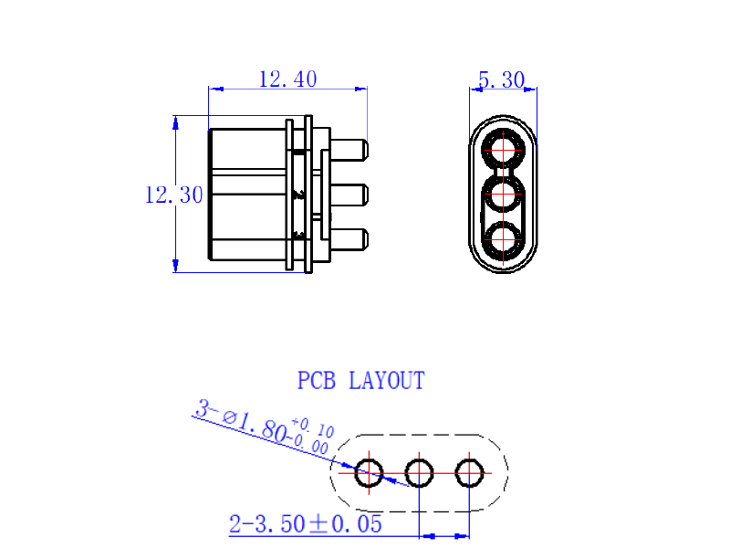 Разъем силовой MR30, 3 контакта, розетка на плату