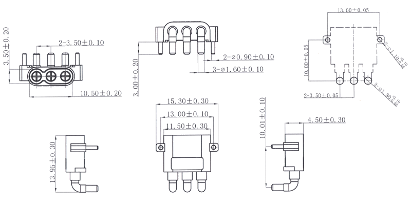 Разъем силовой MR30, 3 контакта, штекер на плату угловой