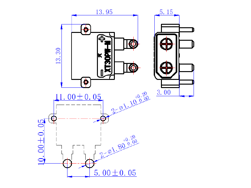 XT30PW30-M.G.Y Разъем силовой XT30, 2 контакта, штекер на плату угловой