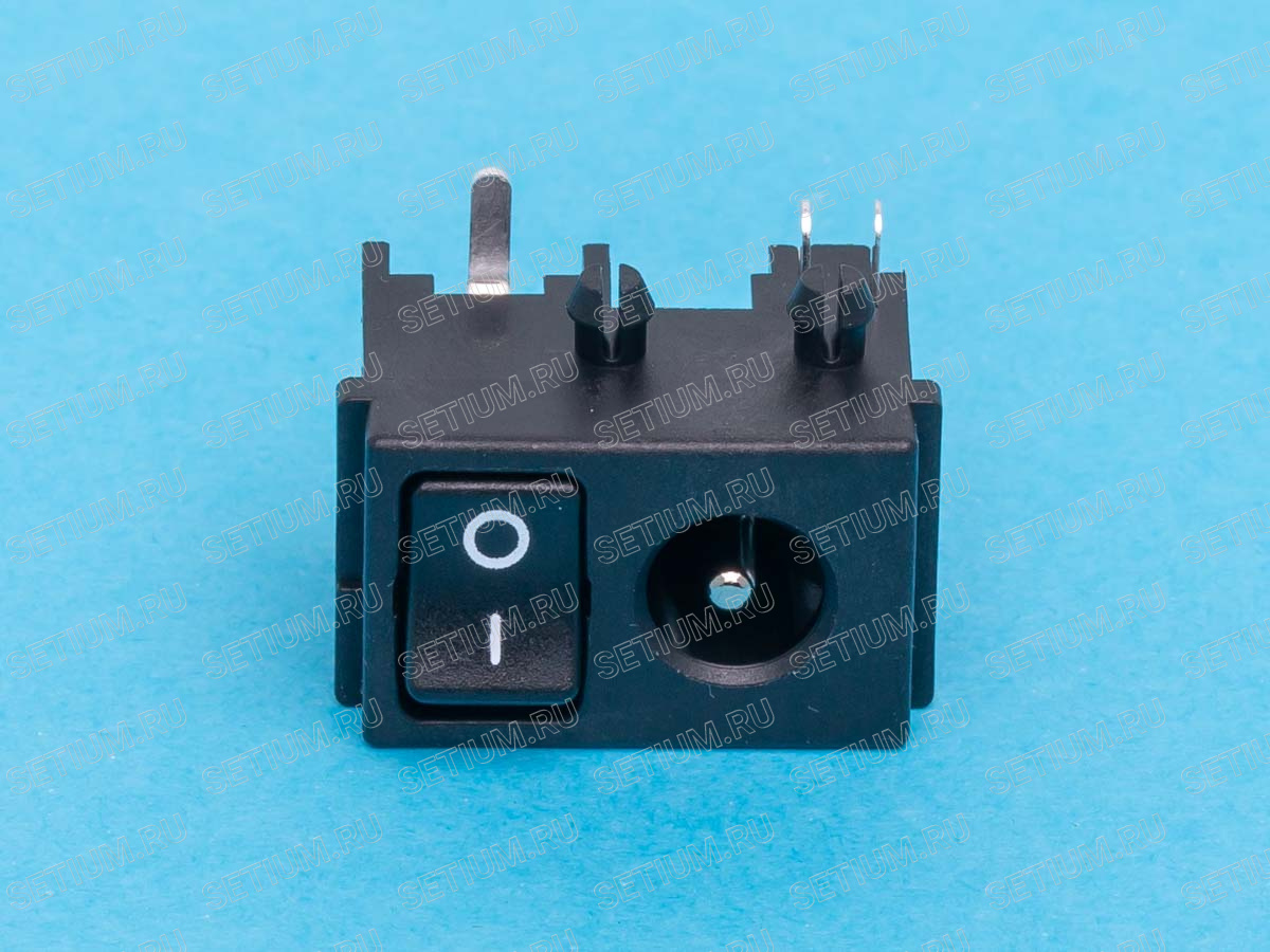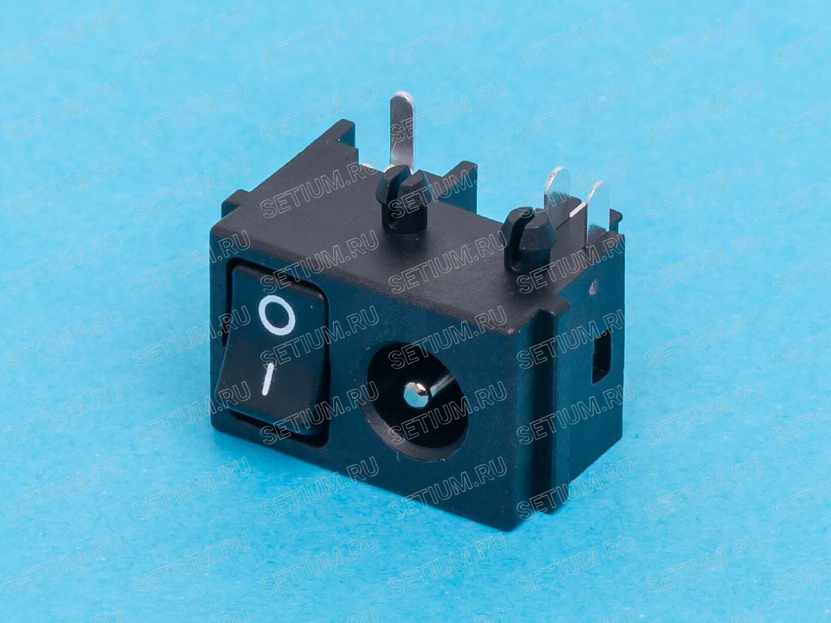 Разъем питания штыревой 2,1мм, вилка на плату с выключателем