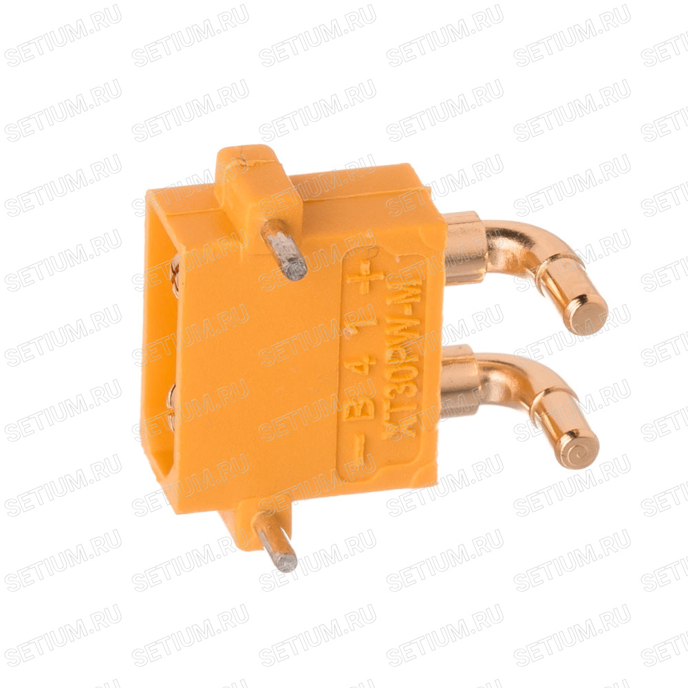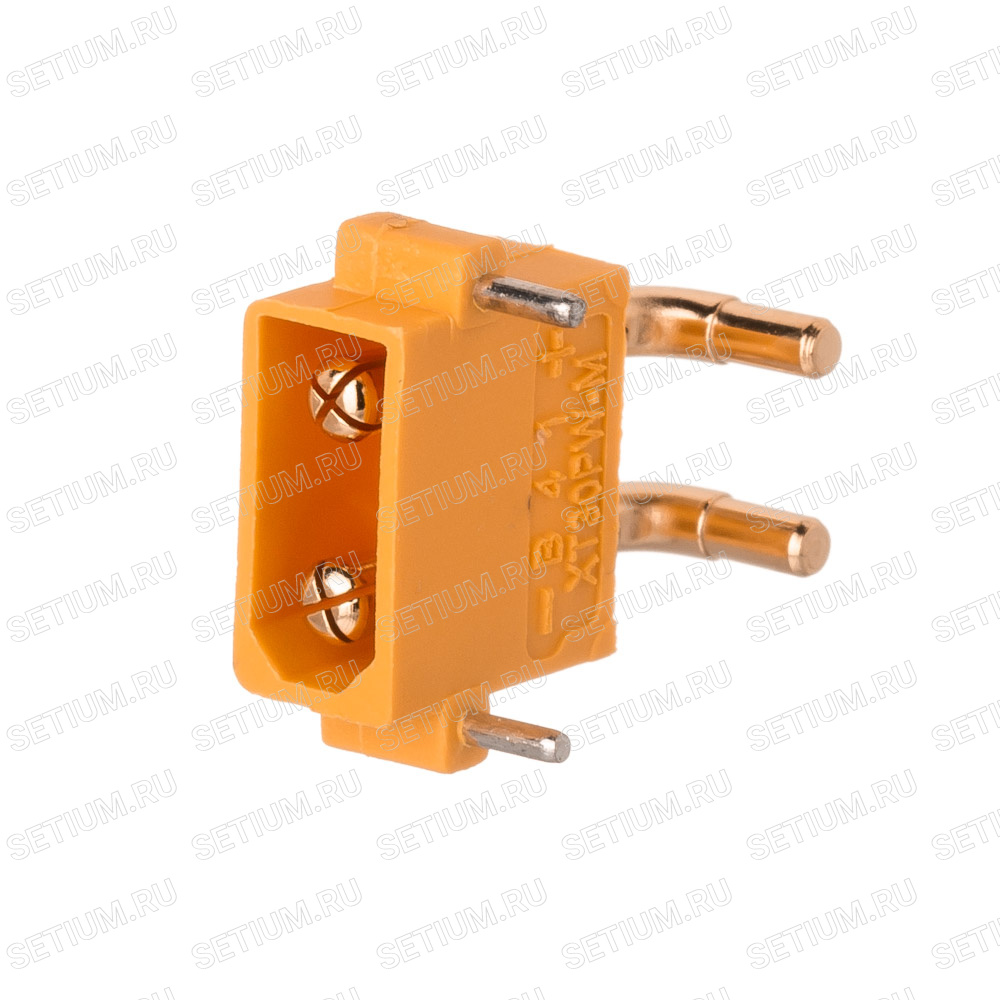 Силовой разъем питания DC XT-30 папа угловой для пайки на плату, 2 контакта, рассчитан на максимальный ток 30А.