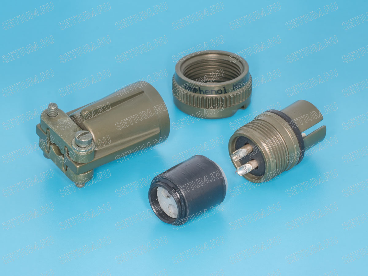 Индустриальный разъем Amphenol. Изготавливается по стандарту MIL-C-5015. Вилка на 2 контакта, на кабель, резьба внутренняя.