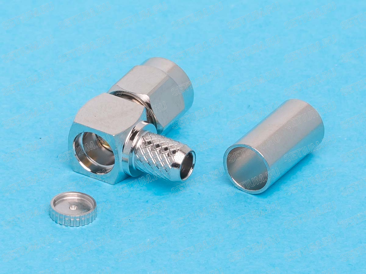 SMA-LC58P Разъем SMA вилка на кабель RG-58, обжимной, Г-образный