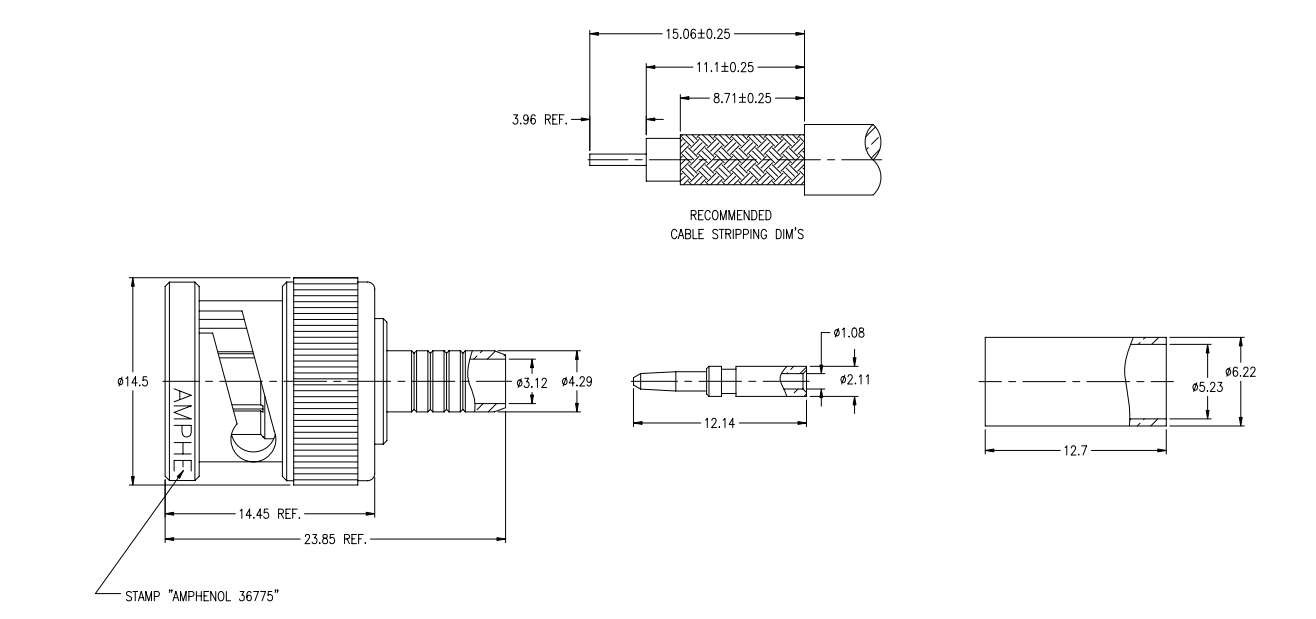 000-36775 Разъем BNC Amphenol, вилка на кабель RG-58U, обжим