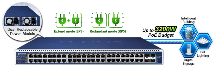 | Общая мощность PoE, Вт | 3200 | |