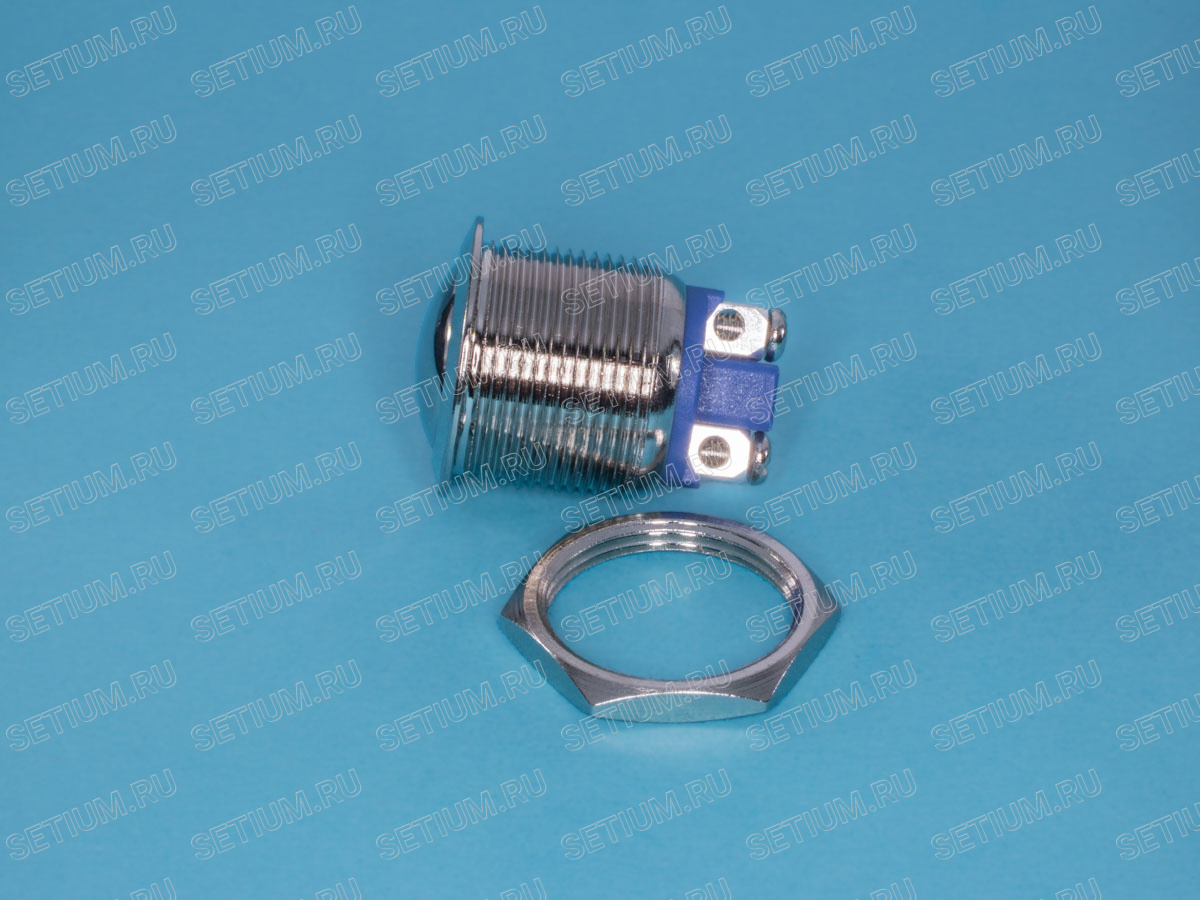 Антивандальная круглая кнопка в металлическом корпусе, установка на панель/блок. Без фиксации.