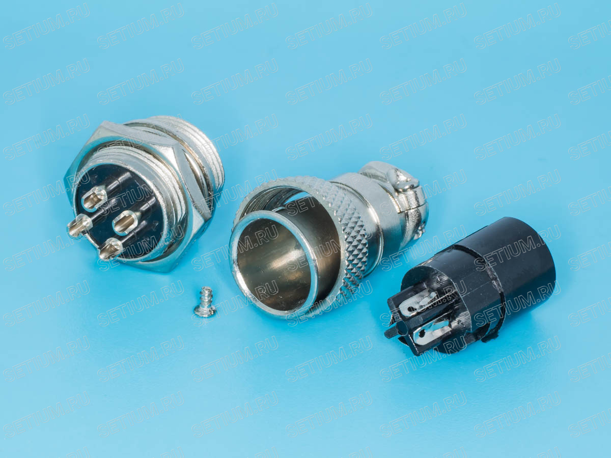 Разъем M16 4 контакта розетка на кабель, вилка на блок, тип GX16, комплект