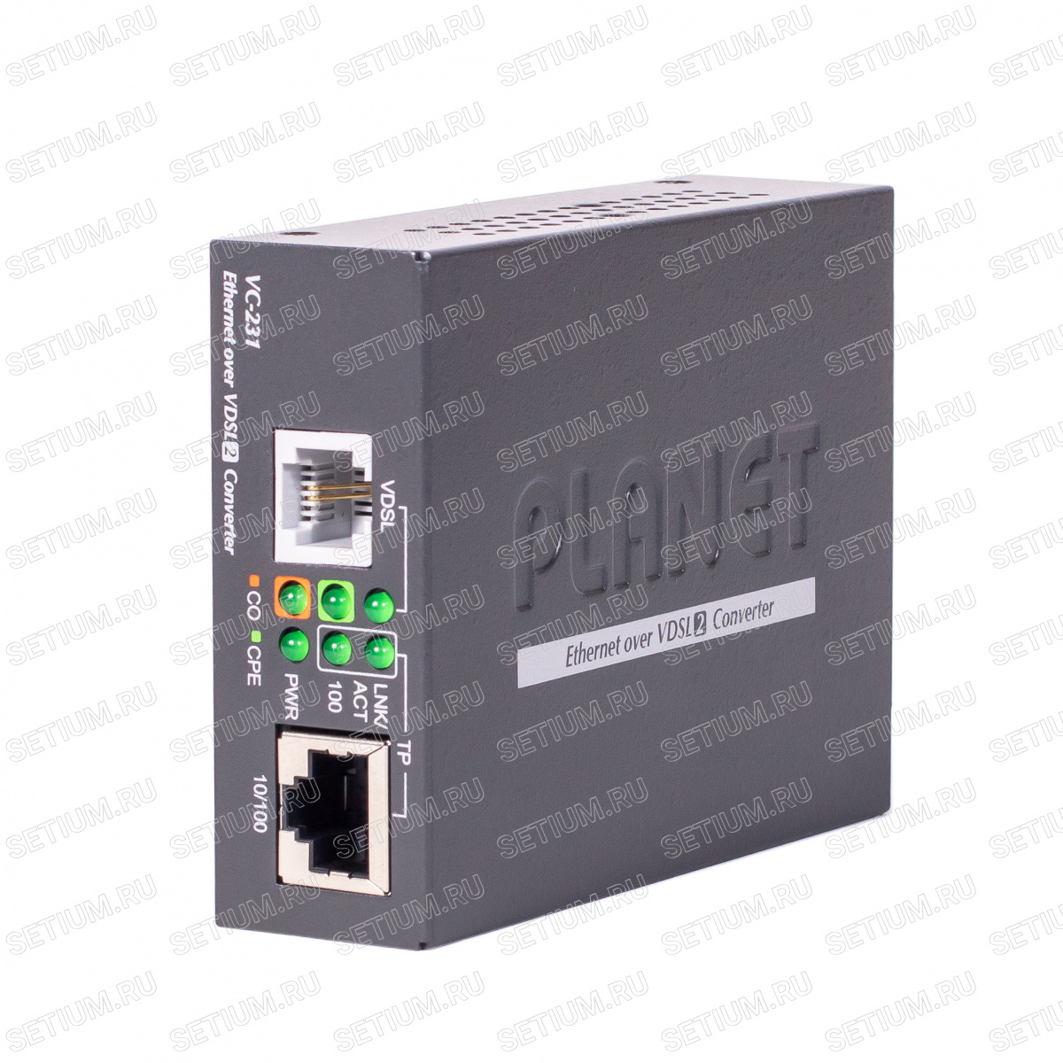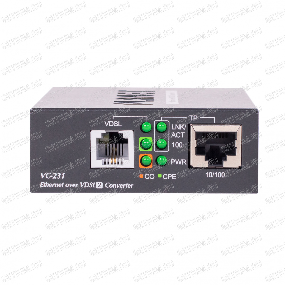 VC-231 представляет собой конвертер Long Reach Ethernet (LRE) с одним портом Ethernet RJ-45 и одним телефонным разъемом RJ-11 для подключения VDSL2. Благодаря сплиттеру из комплекта устройства возможно использовать одну линию для передачи данных и телефонной связи одновременно.