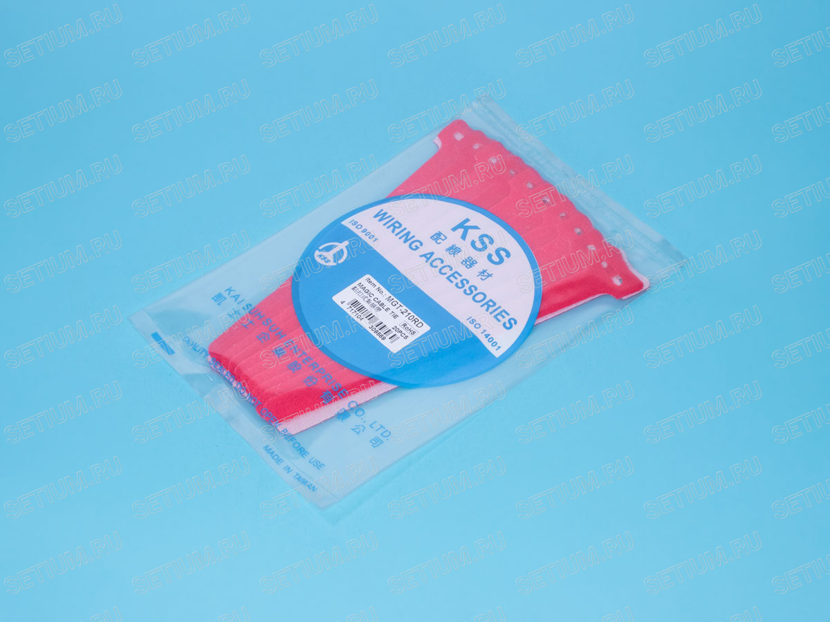 Стяжка 210х16 мм с липучкой, красная, упак. 20 шт.