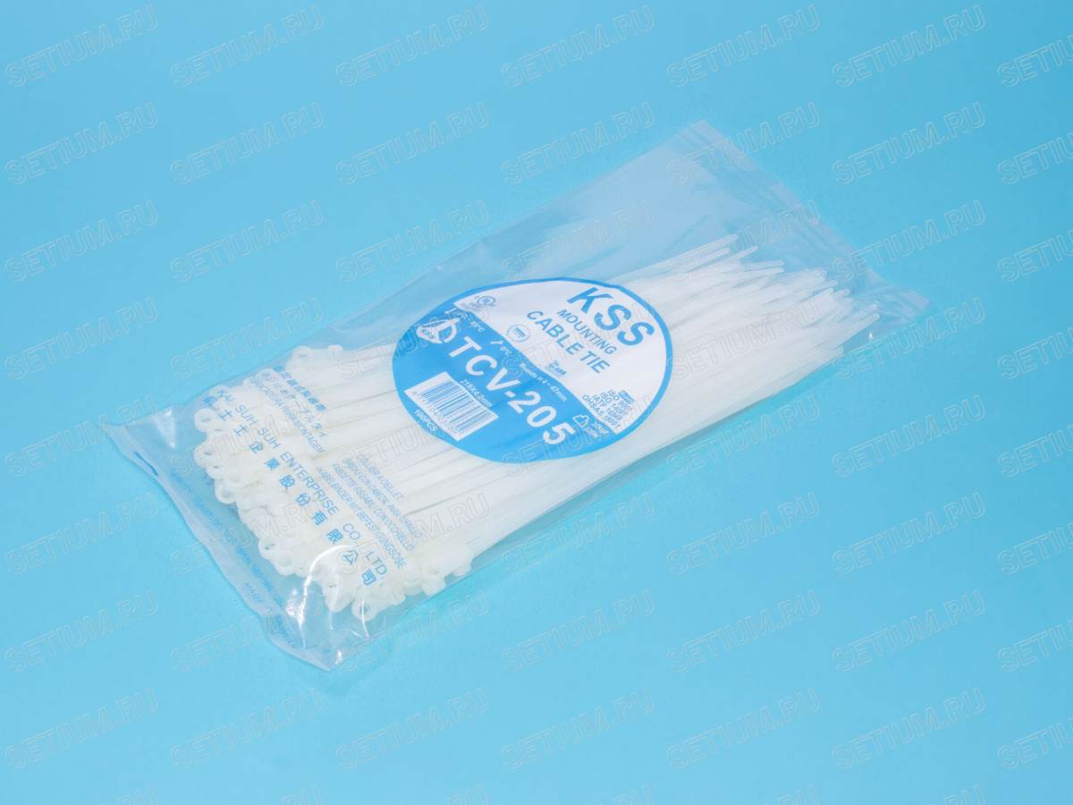 TCV-205 Стяжка 205x4,2мм с крепежным отверстием, белая, упак. 100 шт.