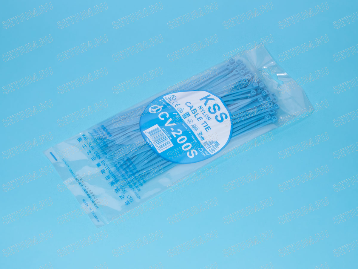 CV-200SBL Стяжка (хомут) пластиковая нейлоновая 200 х 3.2 мм, синяя, упаковка 100 шт. CV-200SBL